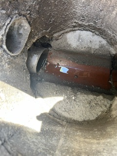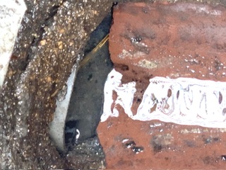 寄せて頂き、最終桝の内部を見たらパイプと半割れの陶管に隙間があり、パイプが陥没していました。