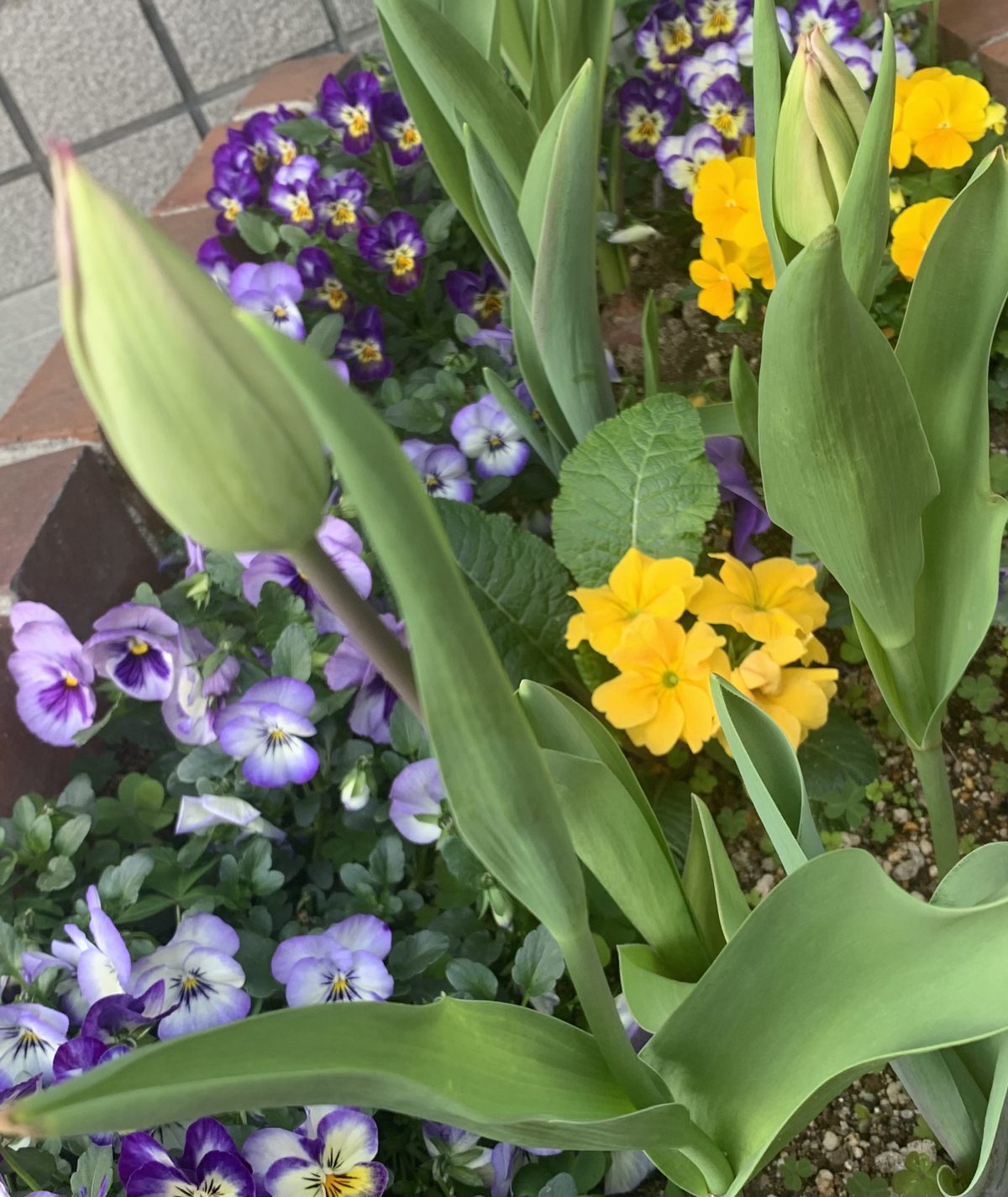 こんにちは!かめジョンです!本当は晩秋に植えるチューリップ🌷の球根。3月初旬に余っているからといただいて植えてみたところ‥やっと蕾が!ダメかもと思っていたのでこの成長ぶりに気持ちもワクワク!満開が楽しみです!