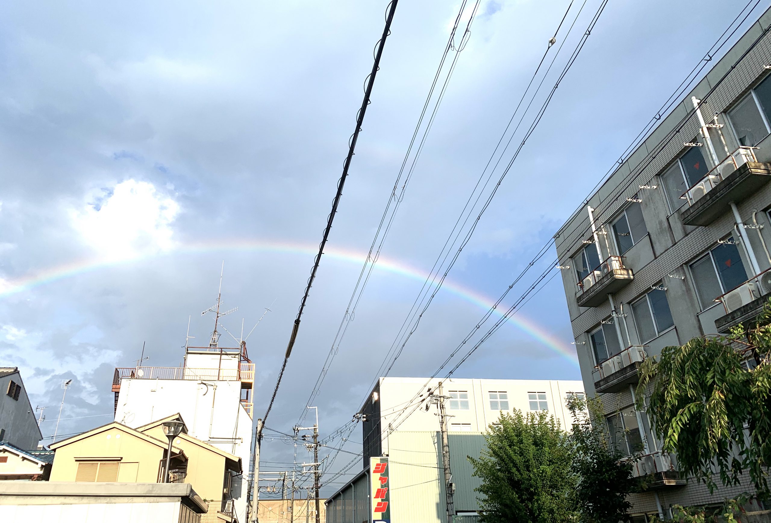 昨日の仕事帰りに久しぶりに虹に遭遇しました!かめジョンです!夕立のあと東の空にかかった大きな虹🌈!きっと良いことが待ってます♫今週も頑張りましょう!