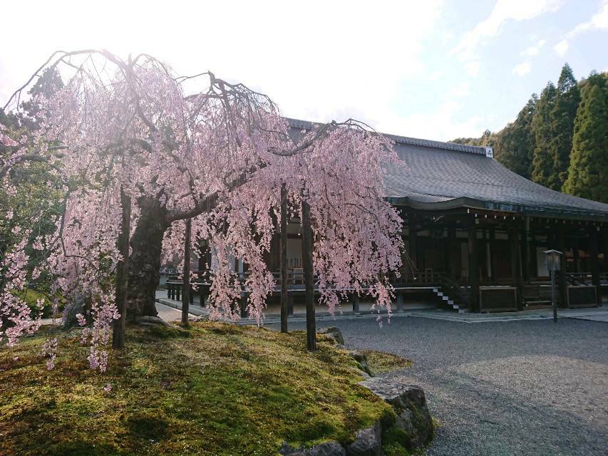 昨日、苔寺さんへ打合せに寄せて頂きました。しだれ桜と本堂、苔の素晴らしさで、パチリと撮りました。